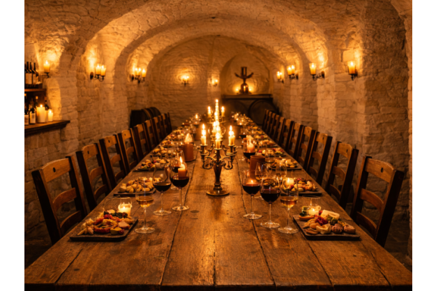 Bei Kerzenschein und stimmungsvoller Atmosphäre verkosten Sie ausgewählte Weine, deren Geschichte bis in die Antike und das Mittelalter zurückreicht. Begleitet von einer herzhaften Winzerbrotzeit auf rustikalen Holzbrettern begeben wir uns auf eine Reise durch Klöster, Adelshöfe und alte Handelswege.