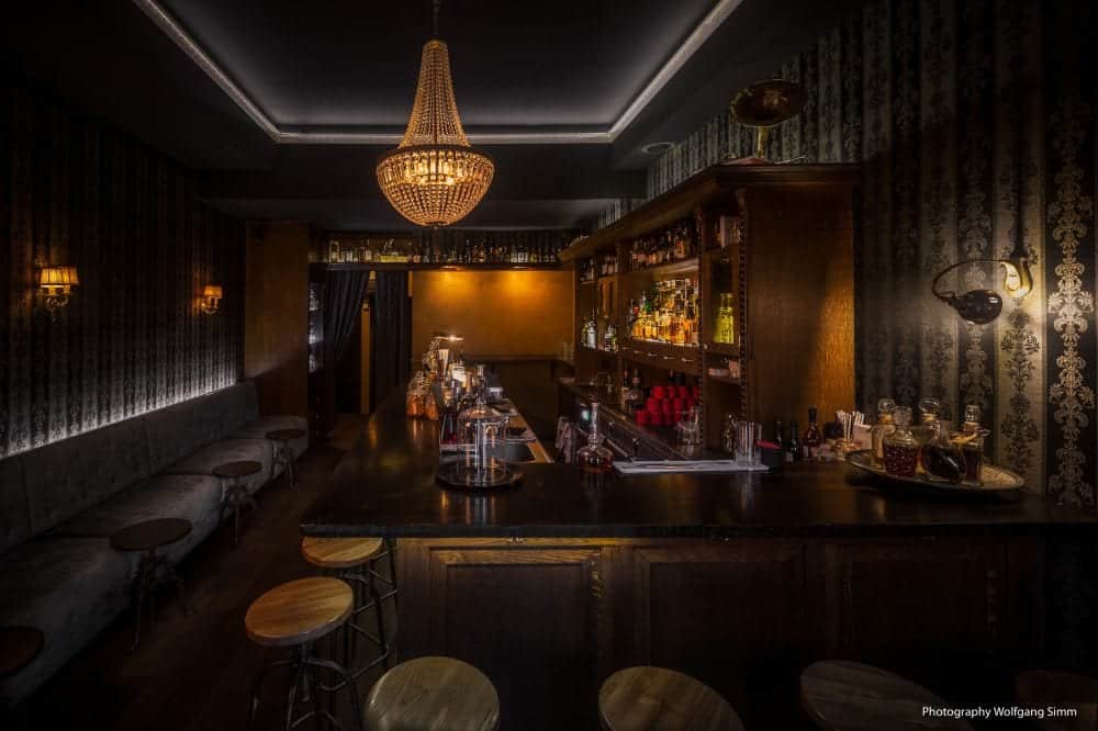 Eingerichtet im Stile der 1930er und 1940er Jahre ist die Cocktailbar der Inbegriff von Klassik. Es reihen sich schwarze Vorhänge an kunstvoll gemusterte Tapeten und eine edle Bar aus dunklem Holz. Auf der Karte finden Gäste kreative Kreationen, in Fässern gereifte Cocktails, Bitters aus Eigenproduktion und selbst angesetzten Likör und Sirup.