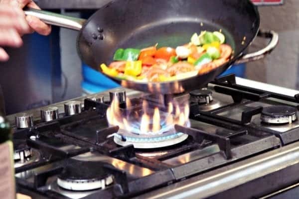 - 1 Zehe Knoblauch mit in die heiße Pfanne legen.