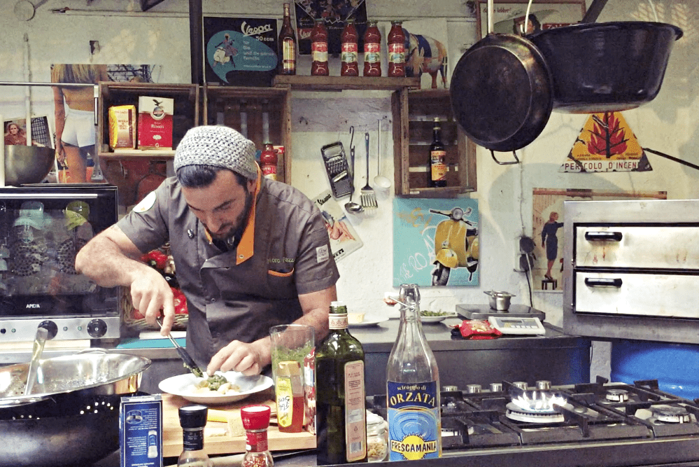 Lasst euch anstecken von vollblütiger Kochleidenschaft, Experimentierfreude, Lust auf Essen, italienischer Leichtigkeit, einer ordentlichen Portion Pragmatismus, Improvisationstalent, Charme und Humor. Kochen mit Raffale macht riesig Spaß, rüttelt euch auf, lehrt euch fürs Leben und macht euch für einen kurzen Augenblick selbst zum Süditaliener. Der Funke springt garantiert über. Zwischen wunderschönen alten Vespas, in einer einzigartigen und zugegeben ungewöhnlichen Atmosphäre verbringt ihr ein paar sehr unterhaltsame Stunden, in der ihr ganz viel übers Kochen, alle möglichen Gastro-Geheimnisse, Dos and Don’ts und die Basics der süditalienischen Küche erfahrt. Wer Pizza, Pasta, Vino und Vespas liebt, fühlt sich wie im Paradies!