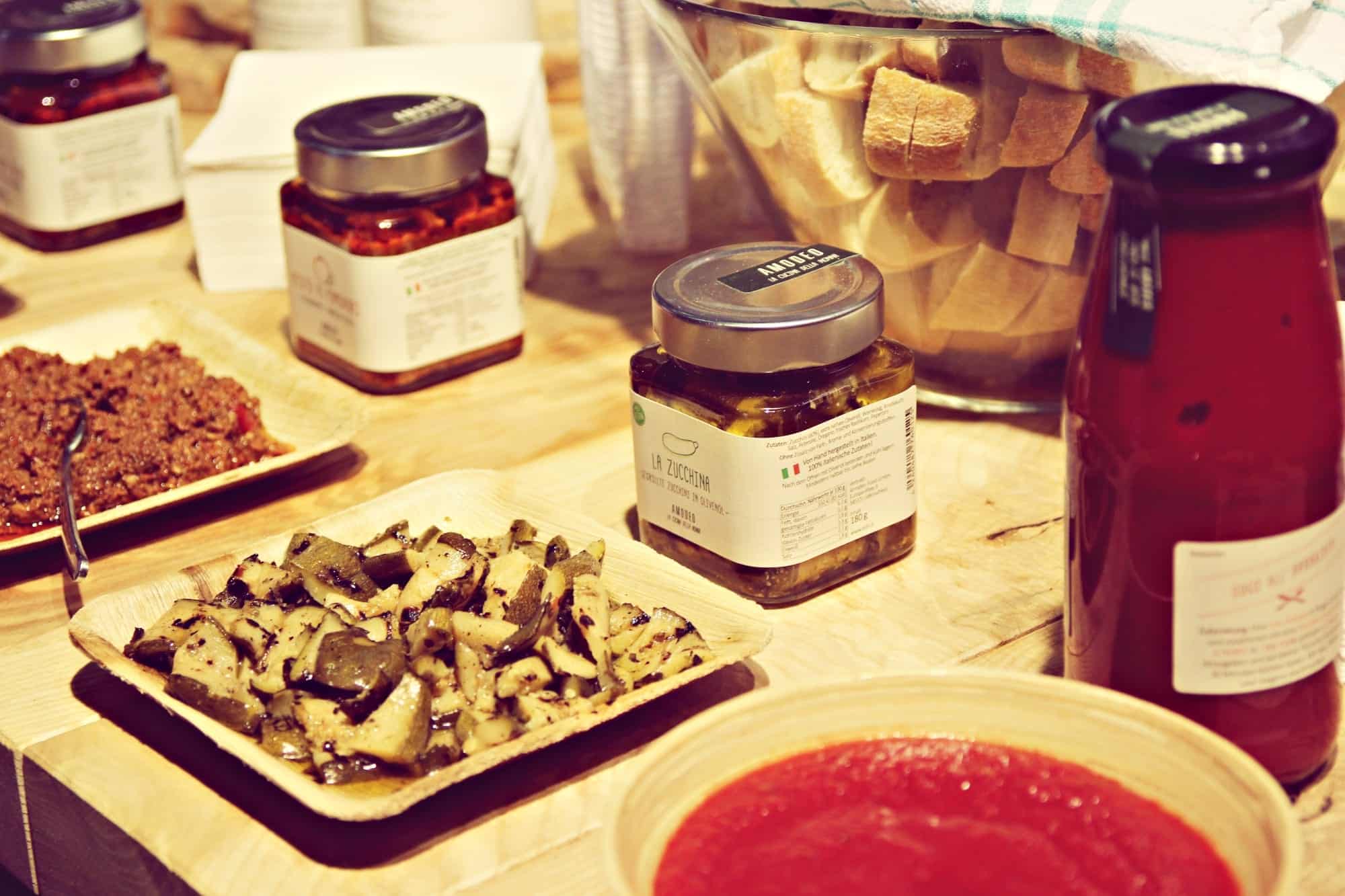 Unser erster Geschmackstest auf der Eat & Style katapultierte uns unmittelbar nach Kalabrien. Am Stand von Amodeo, der kalabrischen Spezialitäten aus der eigenen Manufaktur von Nonna Rosina feilbietet. Die Großeltern Domenico und Rosina Amodeo aus Crucoli pflegen seit über 80 Jahren enge Beziehungen zu lokalen Produzenten. Diese Leidenschaft für heimische Produzenten haben sie an ihren Enkel Domenico weitergegeben, der mit gleicher Passion diese Tradition fortführt. Bei Amodeo kosten wir ein fruchtiges, vielschichtiges Olivenöl, das im Abgang den Gaumen leicht kitzelt, sonnengetrocknete Tomaten, die genau die richtige Konsistenz haben und unfassbar gut riechen. Schon reicht uns Domenico Amodeo ein vorzügliches Pesto aus diesen Tomaten und dem grandiosen Öl, Grana Padano, Walnüssen, getrocknetem Ricotta und Basilikum. Und inmitten des Zeniths, einer ehemaligen Fabrikhalle, geht die kalabrische Sonne auf. Diese Produkte übertreffen alles, was ich an Feinkostprodukten aus dem Glas jemals gekostet habe. Das Geheimnis liegt ganz bestimmt darin, dass Amodeo jeder Zulieferer persönlich bekannt ist und jede Zutat sorgfältig geprüft und ausgesucht wird. Das schmeckt man tatsächlich! Amodeo – la cucina della nonna kommt sehr dicht an Geschmackserlebnisse heran, die man nur in Italien selbst hat!