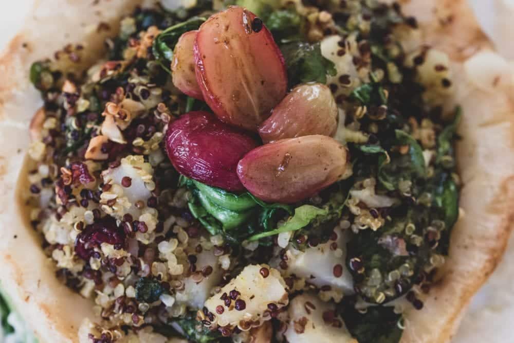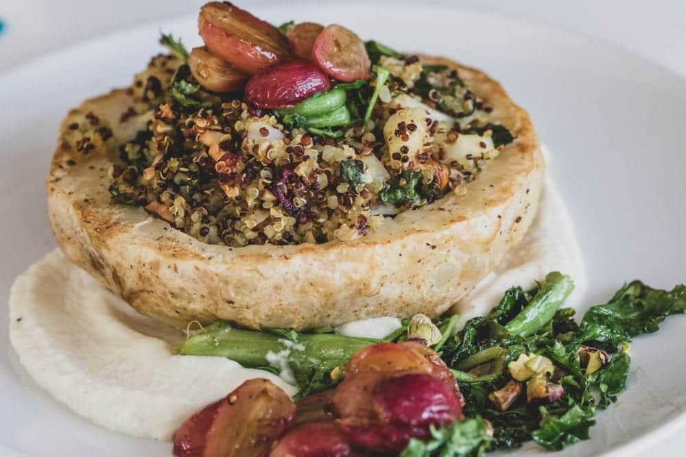 Gefüllter Knollensellerie mit Quinoa, Cranberries, Nüssen und Spinat