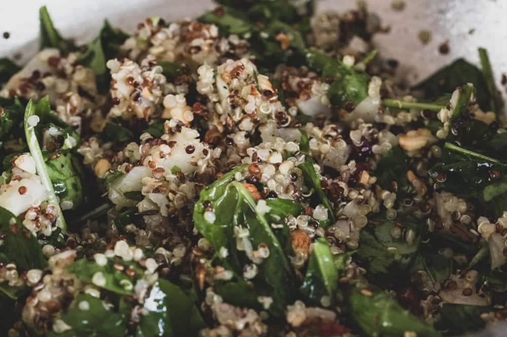 4. Spinat und Cranberries ebenfalls grob hacken und zum Quinoa dazu.