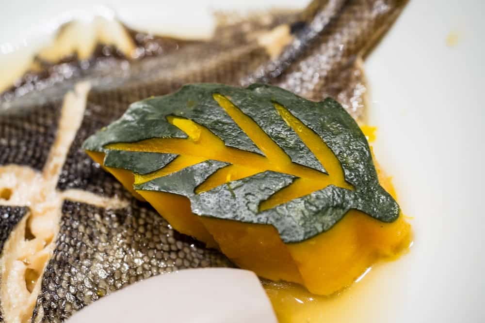 - Das ikebanahafte Arrangement der Speisen. Zu Blüten oder Blättern kunstvoll geschnitztes Gemüse spiegelt die Jahreszeit und das Thema des Menüs wider.