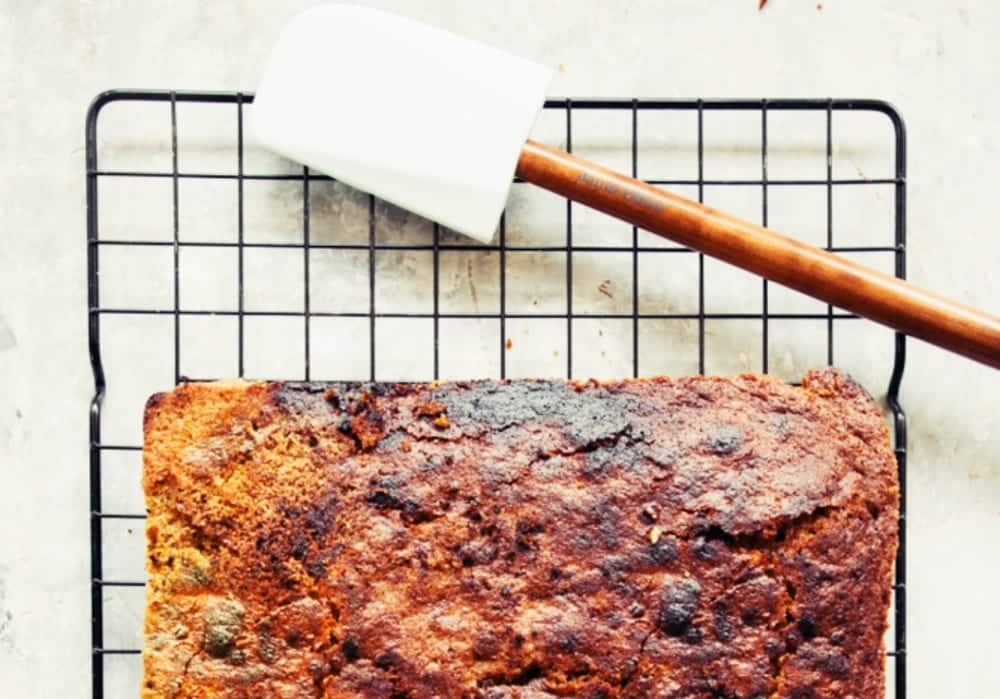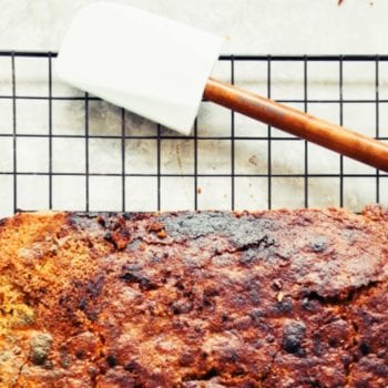 - Teig in eine gefettete, eckige Springform geben und glatt streichen. Bei 175 Grad im vorgeheizten Ofen auf mittlerer Schiene 40 – 45 Minuten backen. Auf einem Rost auskühlen lassen.