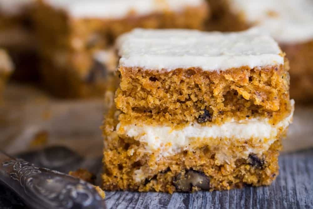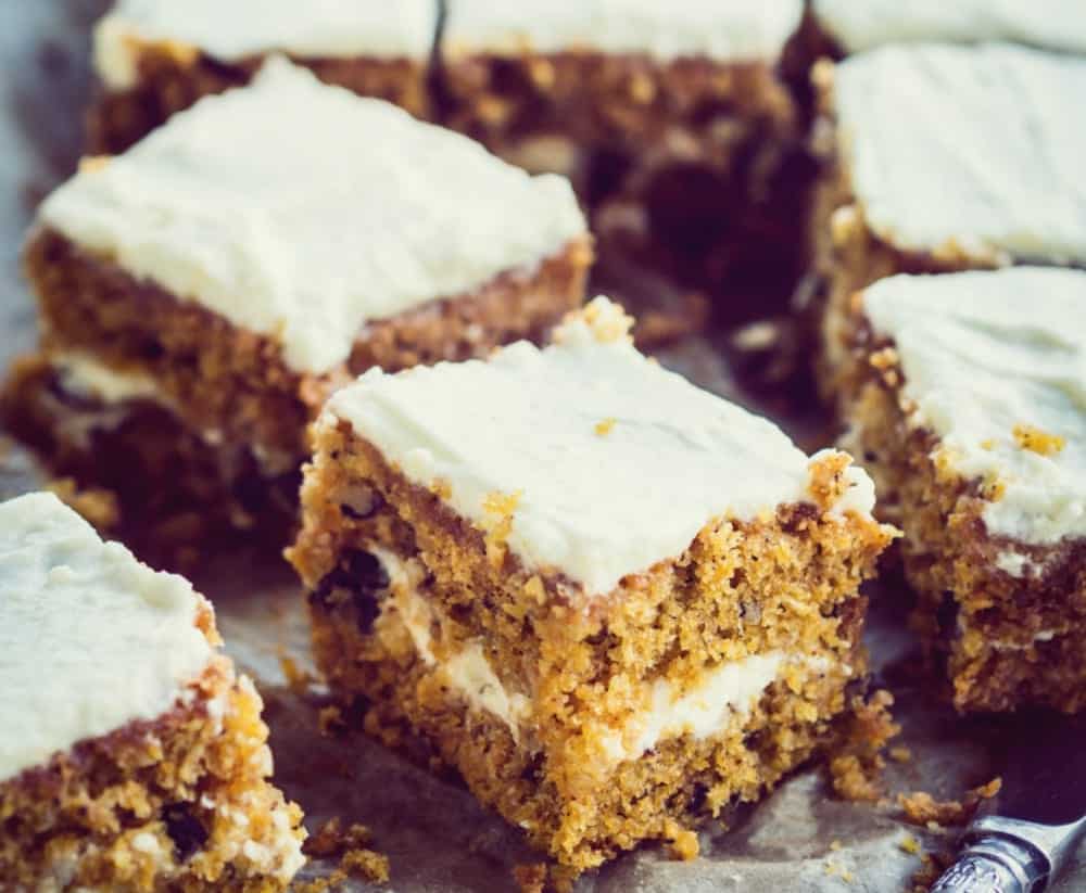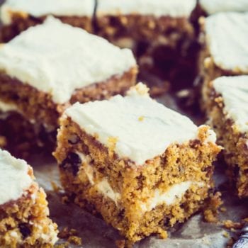 Wir haben es ja schon öfter mal erwähnt und können es gar nicht oft genug betonen: Backen mit Gemüse ist so lecker! Die Kuchen werden saftig und richtig geschmackvoll, ohne aber wirklich nach Karotte, Rote Bete, Zucchini oder Kürbis zu schmecken. Spezielle Gewürze, Nüsse und Schokolade passen toll zu den erdig-süßlichen Gemüsenoten. Besonders gut zu Karotten schmeckt Zimt. Das wirst du merken, wenn du diesen Kuchen nachbackst. Du kannst natürlich auch Weizenmehl für den Karottenkuchen verwenden, aber Vollkornmehl harmoniert ganz toll mit den nussigen Komponenten und verstärkt den Geschmack der Mandeln und Walnüsse im Teig. Das cremige Frosting macht den saftigen Kuchen am Ende perfekt. Und das Gute: Karottenkuchen schmeckt einfach immer. Egal ob Winter oder Sommer. Einfach noch einen schönen Kaffee dazu machen und eine kleine Kuchenauszeit genießen. Wunderbar!