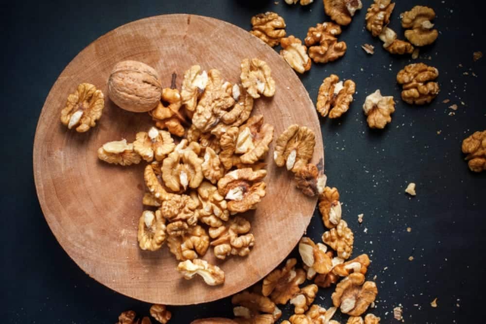 - Mandeln und grob gehackte Walnüsse in einer beschichteten Pfanne ohne Fett goldbraun rösten.