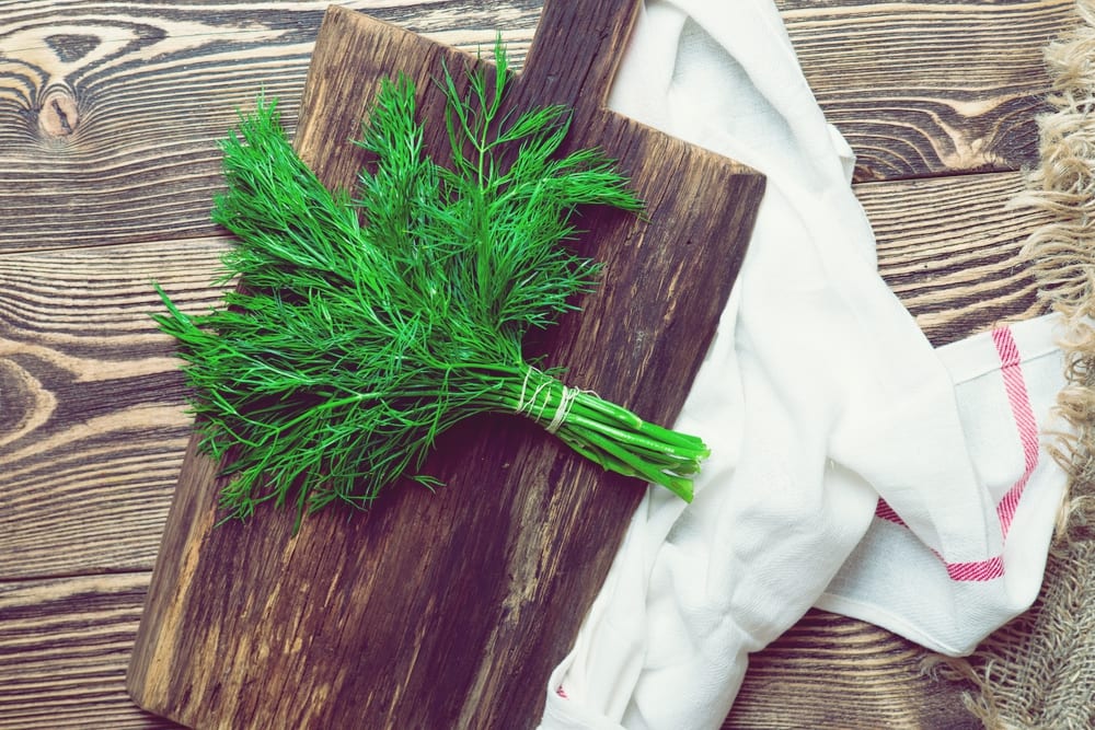 - Die Blätter von Minze und Petersilie und die dünnen nadelartigen Blätter vom Dill fein hacken.