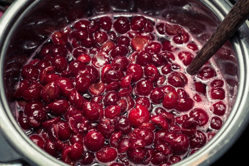 - Aus dem übrigen Teig weitere Pancakes backen. Pancakes mit Banane und heißen Kirschen servieren.