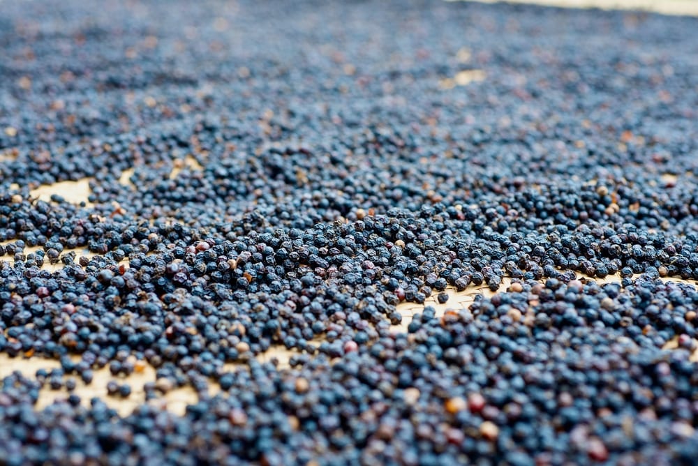 Schwarzer Pfeffer wird ebenfalls grün und unreif geerntet, erhält seine schwarze Farbe dann durch das anschließende Fermentieren und Trocknen.