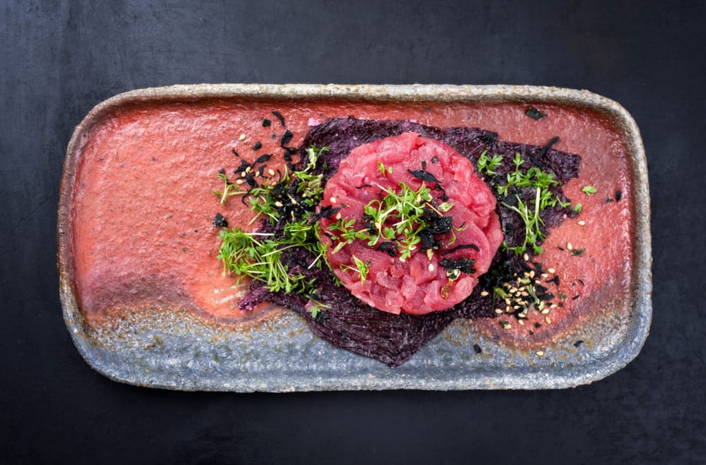 Roher Fisch ist ein Markenzeichen der japanischen Küche – und gerade Thunfisch schmeckt roh als Tataki, Sushi oder Tartar wunderbar cremig. In unserem Rezept geht er eine gelungene Liaison mit cremig-frischer Avocado und Gurke ein, was den Geschmack des spicy marinierten Fisches perfekt ergänzt. Pikante Chili, crunchy Sesam und saure Limette bringen Pepp in dieses Gericht. Eingelegter Ingwer (Gari) und Wasabi runden es ab. Wichtig für den vollendeten Geschmack ist die absolute Frische des Thunfischs, der Sashimi-Qualität haben muss. Unbedenkliches und geschmacklich hervorragendes Thunfischfilet bekommt ihr beim Fischhändler eures Vertrauens – der Fisch sollte eine schön rote Färbung haben. Dieses Rezept ist durch die Kontrastfarben Rot und Grün außerdem ein echter Hingucker.