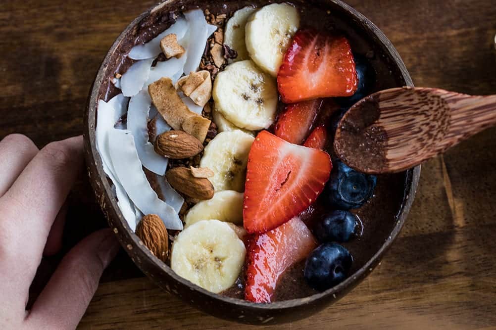 Unser Frühstück ist jetzt knallbunt, fruchtig und zum Auslöffeln – Smoothie-Bowls machen jetzt neben Porridge und Smoothies morgens eine richtig gute Figur. Was ist denn jetzt schon wieder eine Smoothie-Bowl? Eigentlich nichts anderes als eine Erweiterung von Smoothies. Die werden jetzt durch die Zugabe von viel gefrorenem Obst, ganzen Früchten und nussig-knusprigen Toppings noch vitaminreicher, sättigender, bekommen eine cremigere Konsistenz, bleiben dabei aber wunderbar frisch. Alles, was du brauchst, ist eine fruchtige Basis. Dazu kannst du Obst deiner Wahl Banane, Kiwis, Erdbeeren, Pfirsiche, Mango, Ananas oder ähnliches gefroren oder pur im Mixer schön cremig pürieren. Die Fruchtkomponente kannst du auf gesunde Weise süßen. Zum Beispiel mit Agavendicksaft, Erdnuss-, Mandel– oder Kokosnussmus. Zu einem gesunden Frühstück gehört natürlich auch mindestens ein Superfood: Also toppst du deine Smoothie-Bowl mit Chia-Samen, Hanfproteinpulver, Goji-Beeren, Maulbeeren oder Acai-Pulver. Und wenn du noch mehr Biss brauchst, machen sich Haferflocken, Erdnüsse, Cranberrys oder Datteln. Für knallige Farben sorgen Himbeeren, Spinat, Matcha oder Mango.