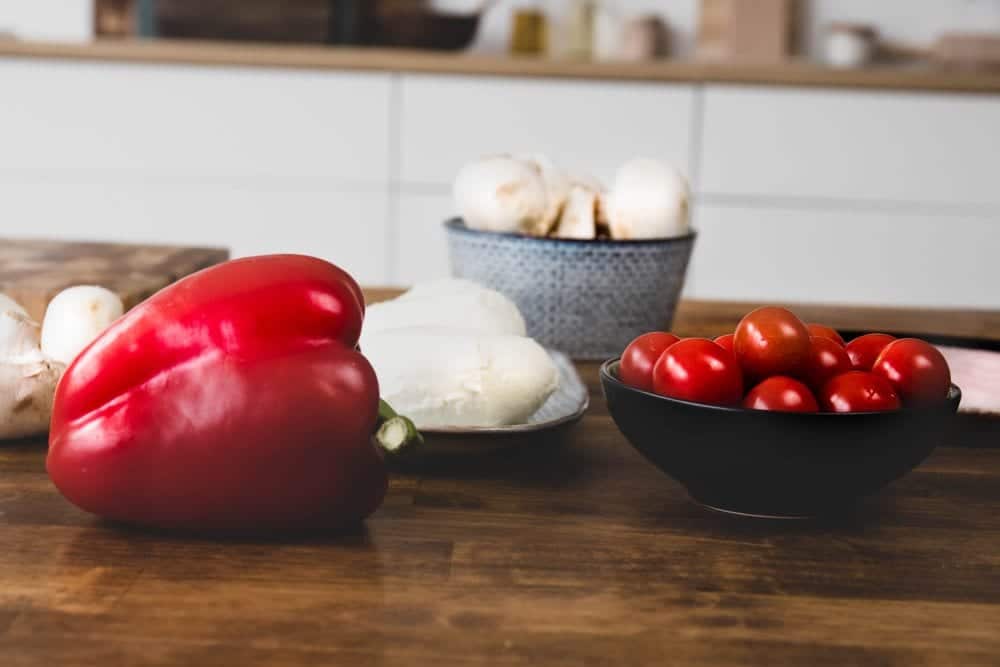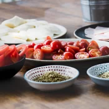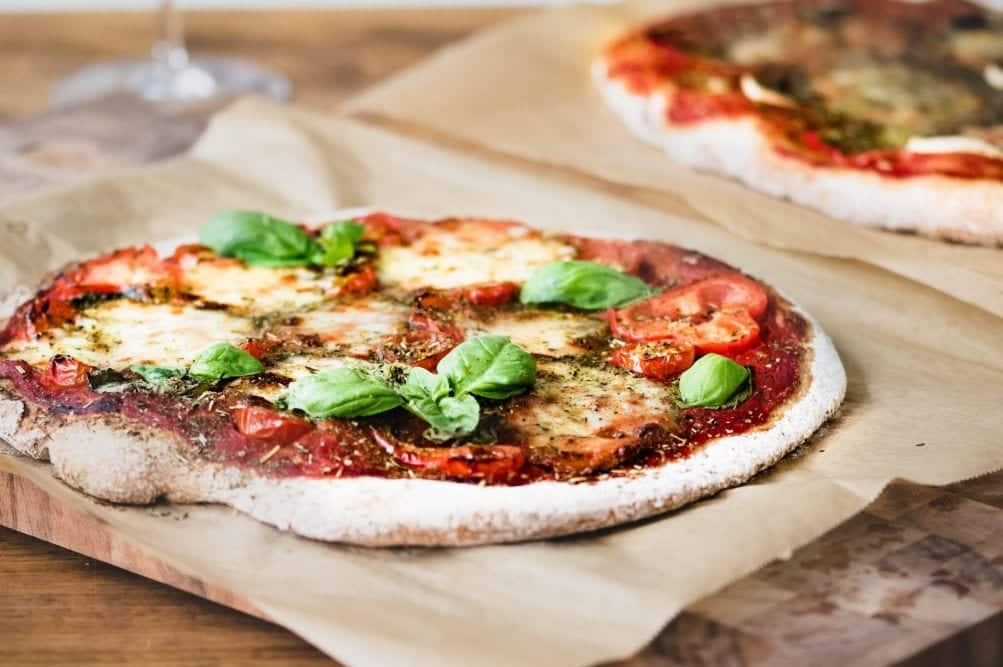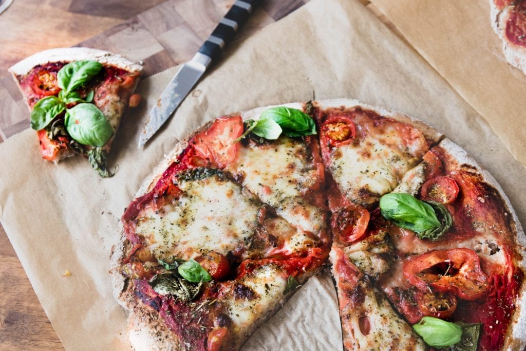 Heißhunger auf Pizza, aber keine Lust auf ungesundes Essen? Dann haben wir was für euch: Pizza aus Dinkelvollkornmehl. Die Mehlsorte ist gesünder als Weizenmehl, weil sie mehr Vitamine und Mineralstoffe liefert, den Stoffwechsel anregt und noch dazu besser sättigt. Im Dinkelvollkornmehl sind außerdem Schalenanteile vorhanden, die die Darmflora verbessern. Mit welchen Zutaten ihr eure Pizza belegt, ist natürlich eure Sache. Wir haben uns für eine vegetarische Pizza Caprese-Art mit frischen Tomaten, Paprika und Basilikum und für eine Variante mit Schinken und Pilzen entschieden. Wie macht ihrs?