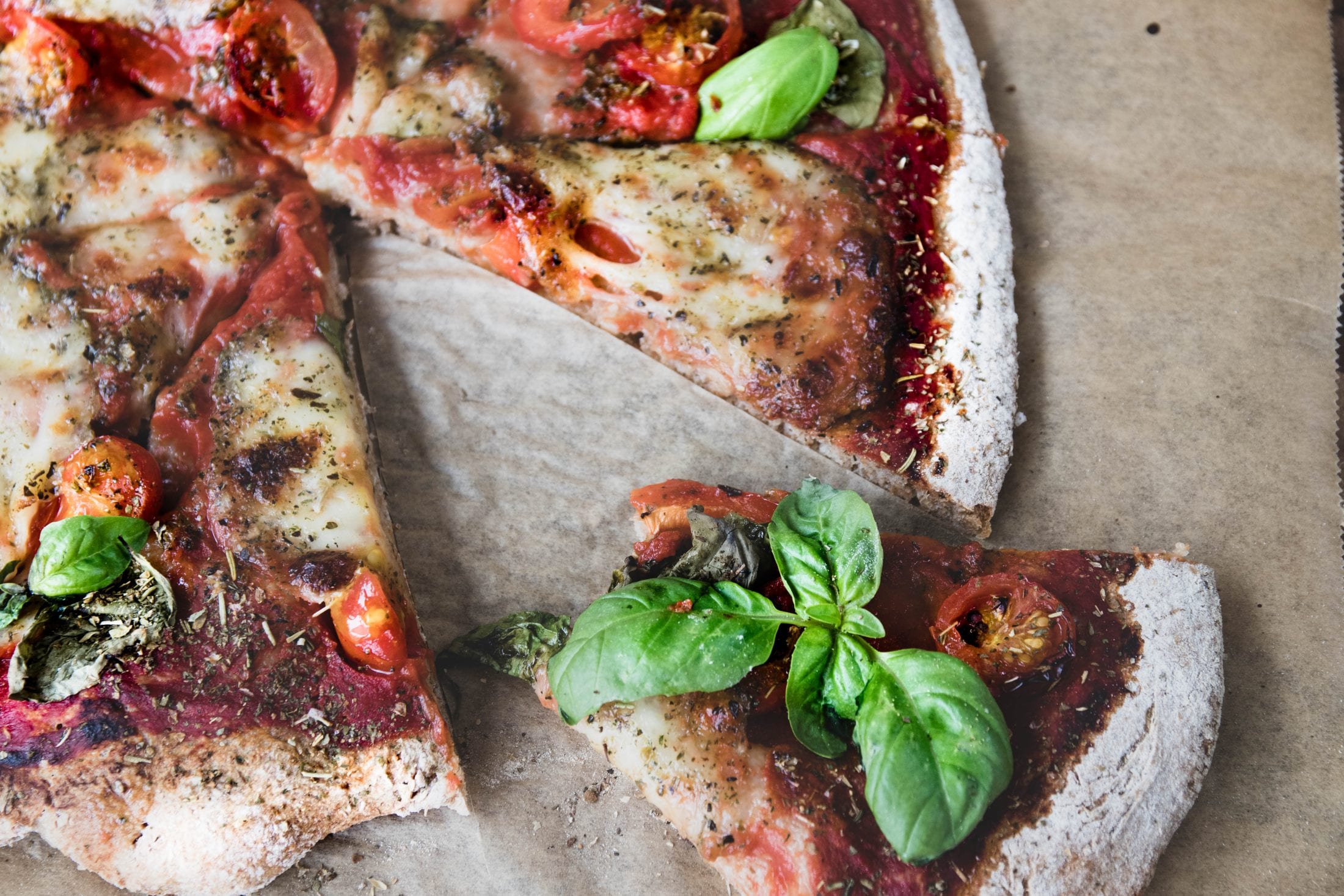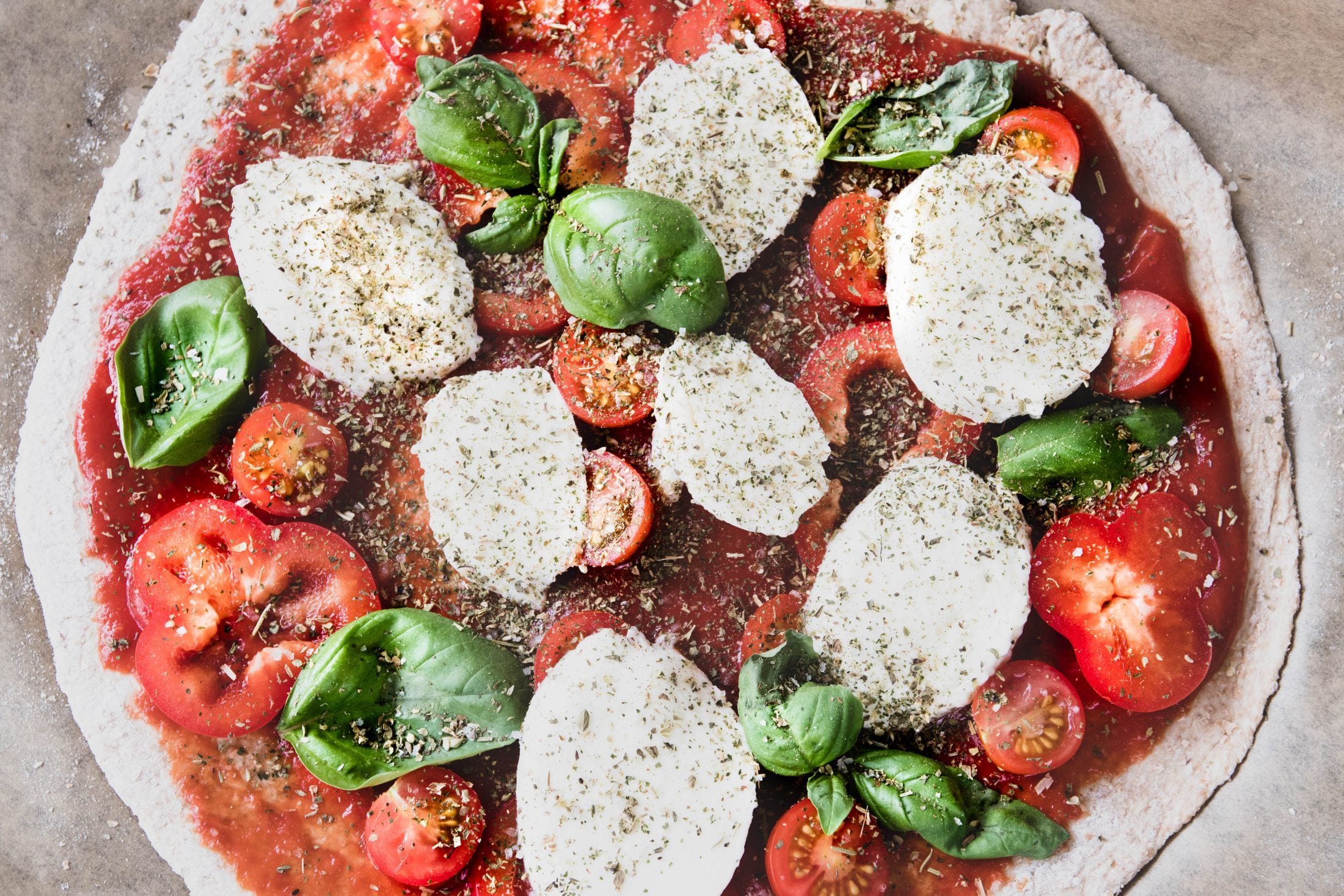 Heißhunger auf Pizza, aber keine Lust auf ungesundes Essen? Dann haben wir was für euch: Pizza aus Dinkelvollkornmehl. Die Mehlsorte ist gesünder als Weizenmehl, weil sie mehr Vitamine und Mineralstoffe liefert, den Stoffwechsel anregt und noch dazu besser sättigt. Im Dinkelvollkornmehl sind außerdem Schalenanteile vorhanden, die die Darmflora verbessern. Mit welchen Zutaten ihr eure Pizza belegt, ist natürlich eure Sache. Wir haben uns für eine vegetarische Pizza Caprese-Art mit frischen Tomaten, Paprika und Basilikum und für eine Variante mit Schinken und Pilzen entschieden. Wie macht ihrs?