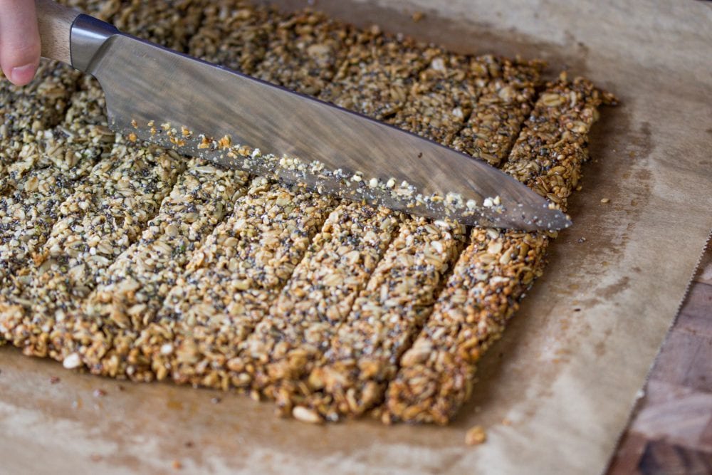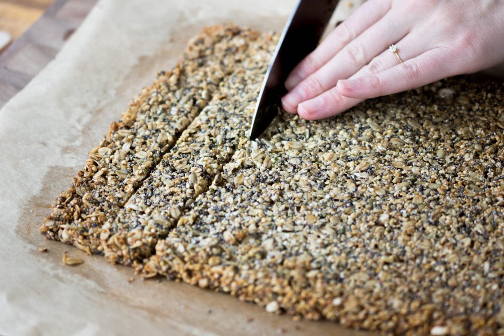 7. Leicht abkühlen lassen und noch warm in Riegel schneiden.