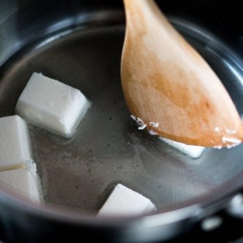 1. Kokosfett im Wasserbad schmelzen. Von der Platte nehmen.