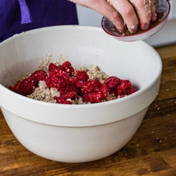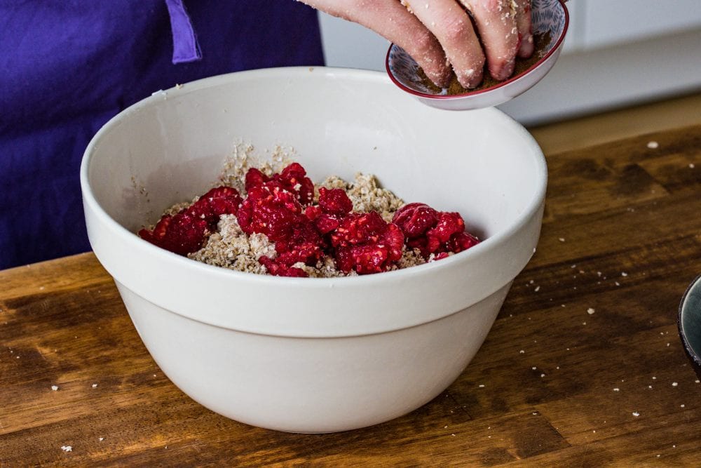Tipp: Noch schneller geht es, wenn ihr gleich gefrorene Himbeeren verwendet – damit gibt es diese leckeren Kekse zu jeder Jahreszeit!
