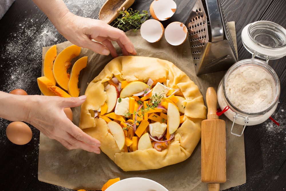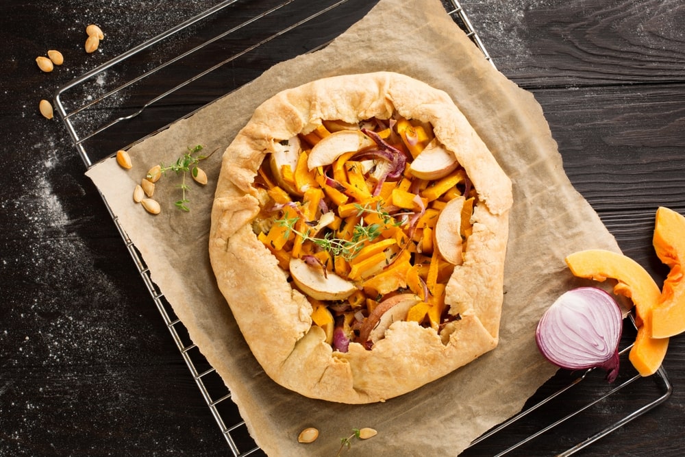 Unschlagbar gut ist die köstliche Kombination von Kürbis und Käse. Deshalb wollen wir euch unser neues Lieblingsgericht, eine herbstliche Kürbis-Galette mit Ziegenkäse, nicht vorenthalten. Die Galette ist ein typisch französischer, flacher Kuchen, bei welchem der Rand um den Belag geschlagen wird.