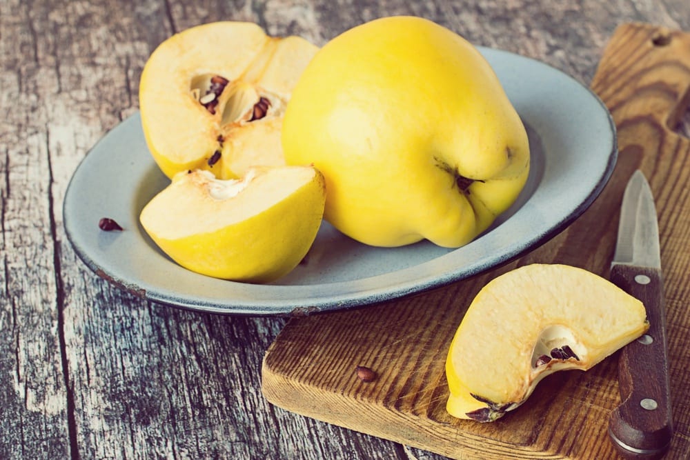 Wer keine Quitten im eigenen Garten hat, findet sie auf Wochenmärkten oder bei Gemüsehändlern. In Supermärkten sind sie leider höchst selten vertreten. Jammerschade, denn ihr könnt so viel Leckeres aus ihnen zubereiten: Quittensaft, Gelee, Marmelade, Mus, Sorbet, Eis, Quittenbrot, Wein oder Likör und sie bereichern herzhafte Gerichte, Desserts, Kuchen, Torten, Konfekt und natürlich lassen sich prima einwecken. Weil das Herbstobst viel Pektin spendet, könnt ihr auch ein super Geliermittel daraus machen. Bevor ihr die frischen Früchte zu was auch immer verarbeitet, müsst ihr den weichen, bräunlichen Flaum mit einem Küchentuch gut abreiben – er enthält viele Bitterstoffe, die nicht angenehm schmecken. Noch mehr über Quitten erfahrt ihr hier.