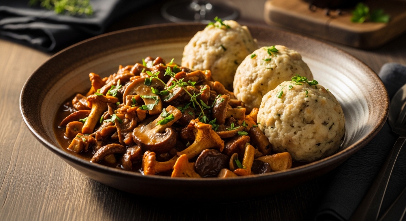 1. Bayerischer Schwammerlgulasch mit Semmelknödel