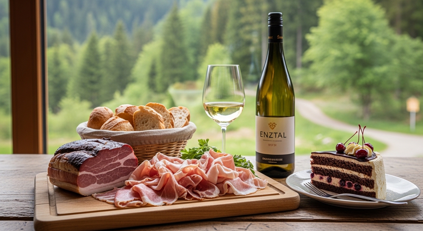 Die Schwarzwälder Kirschtorte ist Deutschlands berühmtester Kuchen – und Pforzheim liegt direkt am Tor zum Schwarzwald, wo dieses Meisterwerk erfunden wurde. Schokoladenbiskuit, Kirschwasser, Sauerkirschen und Sahne verbinden sich zu einem unwiderstehlichen Klassiker.