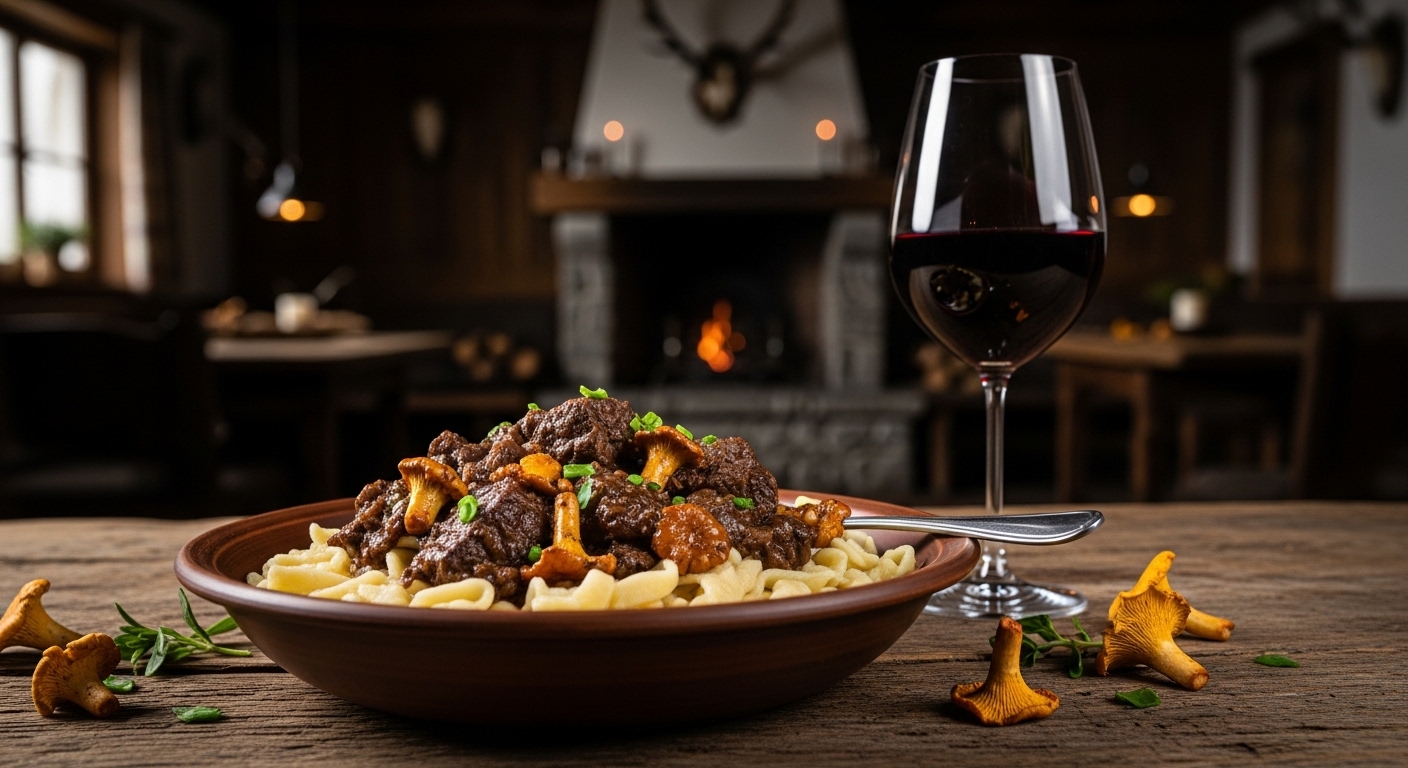 Die Wälder rund um Siegen sind Wildrevier par excellence. Wildschwein, langsam in kräftigem Dunkelbier geschmort, ist ein Festessen, das nach kalten Wintertagen und knisterndem Kaminfeuer schmeckt – ein Gericht mit Wurzeln in der Siegerländer Jagdtradition.