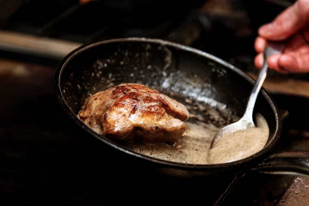 Julian Kutos: Die französische Küche ist von den Zutaten relativ einfach. Man verwendet immer frische Zutaten und davon immer das Beste, was man bekommen kann. Ob es jetzt Fleisch, Fisch, Gemüse, Fett ist – immer frische, gute Ware. Aber es sind auch Zutaten, die es in jedem Haushalt gibt. Frische Kräuter. Lorbeer, Thymian, Gewürze,  Fleur de sel, Pfeffer. Von den Fetten darf natürlich Butter in keinem Haushalt fehlen, aber genauso auch Olivenöl. Denn mit Butter kann man auch vieles nicht machen. Ich könnt zum Beispiel nie ein Steak anbraten, weil die Butter das von der Temperatur nicht aushält.