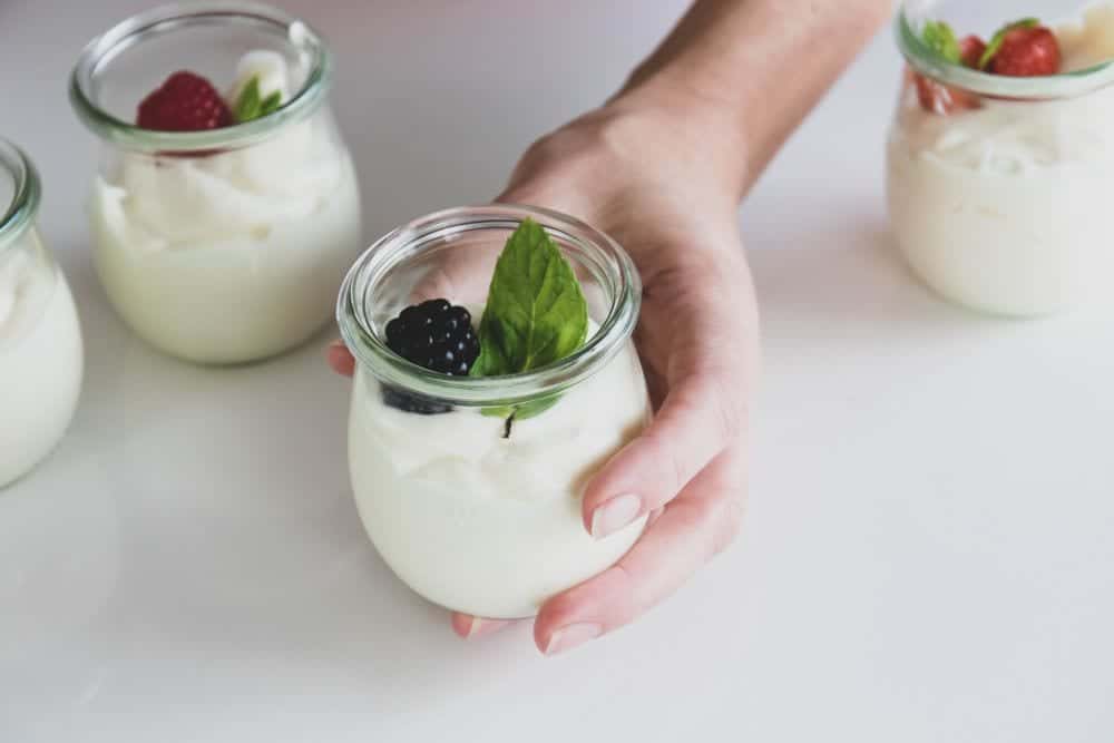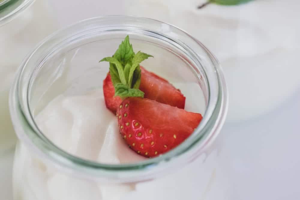 So weiß, so fluffig, so unschuldig und so lecker! Dieses Dessert hat den Titel krönender Abschluss wirklich verdient. Theresa Weber von SOUTHkitchen im Süden Berlins rührt für unser Rezept-Video griechischen Joghurt, halb steif geschlagene Sahne, Schmand und geschmolzene weiße Schokolade zu der cremigsten aller Cremes auf, füllt sie in kleine Gläschen, lässt das Ganze im Kühlschrank fest werden und verziert die Creme mit Beeren. Das ist der ideale letzte Gang eines Menüs, weil sich die weiße Schokoladencreme so schön vorbereiten lässt. Am Abend, wenn die Gäste da sind, musst du sie nur noch servieren!