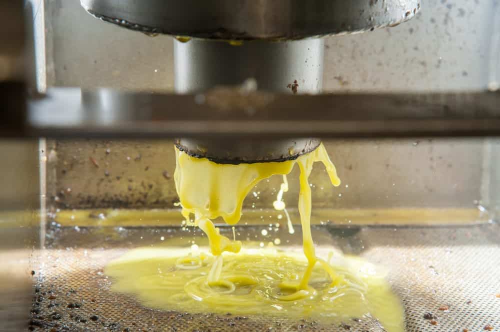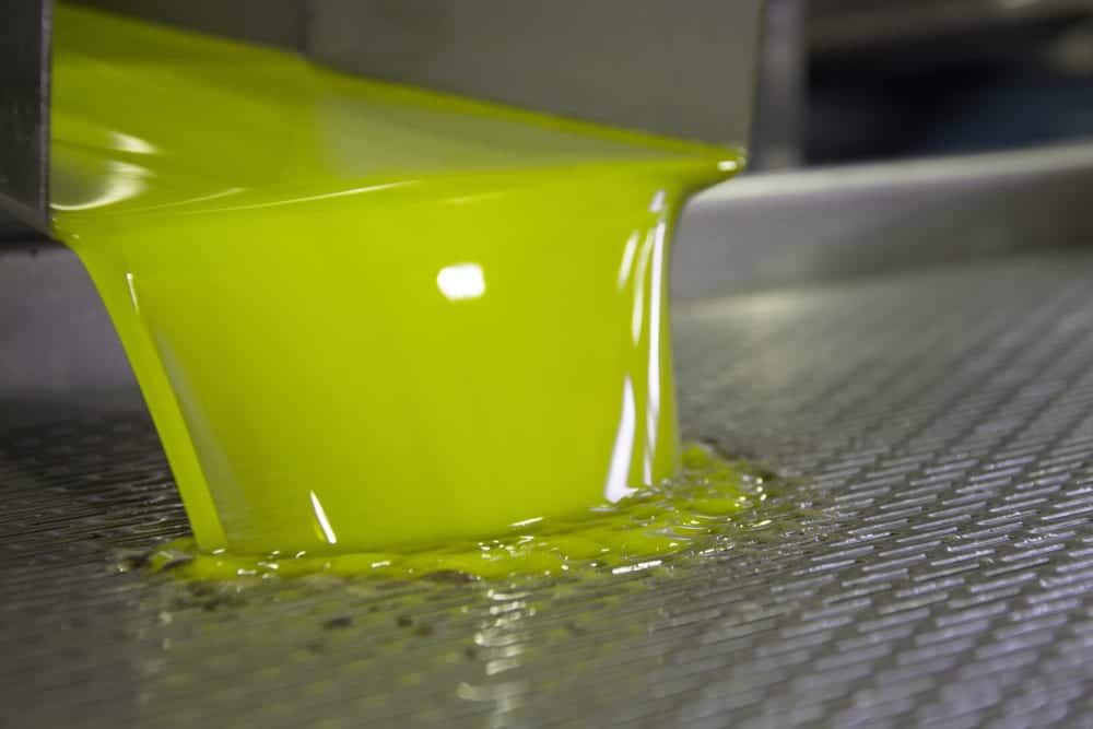 - Eine Presse drückt dann Olivenöl und Fruchtwasser heraus.