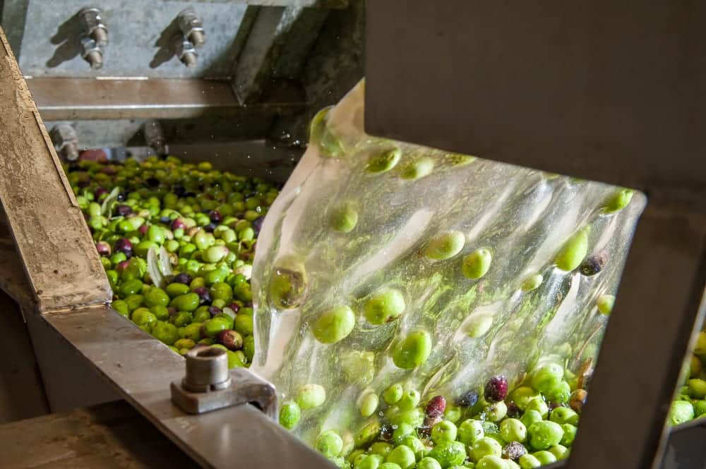- Die frisch geernteten Oliven werden unmittelbar nach der Ernte gewaschen und verlesen.