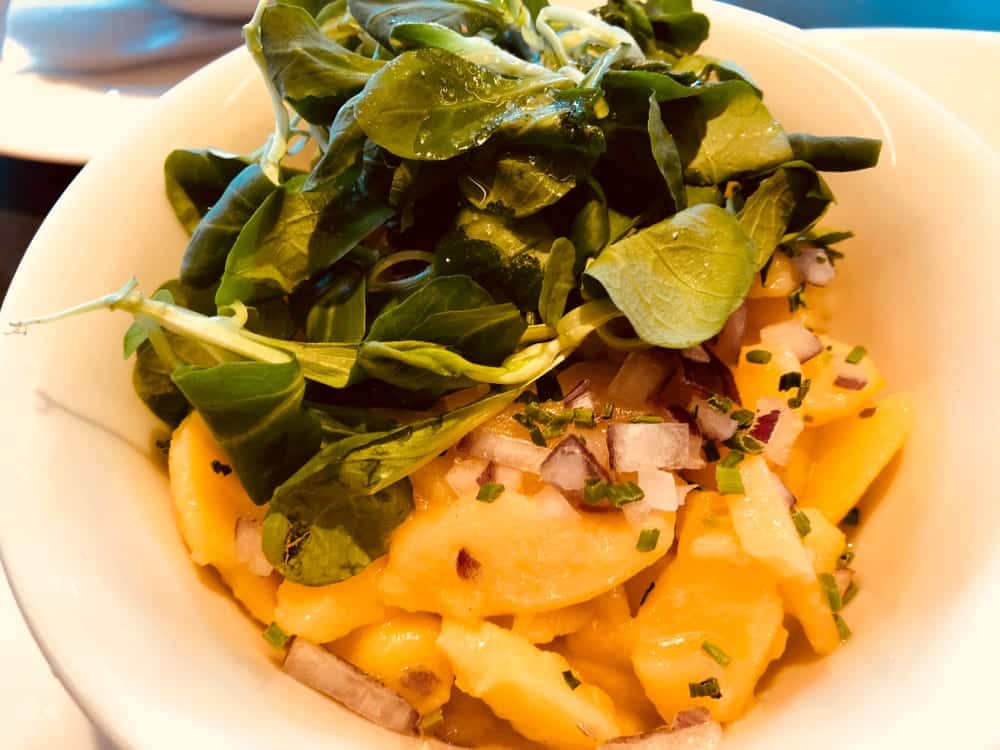 Das echte Wiener Schnitzel ist selbstverständlich aus zartem Kalbfleisch, hauchdünn wie eine Oblate, perfekt aufsouffliert und umhüllt von einer filigranen, knusprigen Schicht Panade – auch Panier genannt. Es ist nicht fettig sondern schmeckt dezent nach Butter. Und wird begleitet von einem cremigen Erdäpfel-Vogerlsalat (für die Piefkes: Kartoffel-Feldsalat – noch mehr Insights in die österreichische Küche findet ihr hier). Hier verraten wir Schritt für Schritt in unserem Rezept, wie auch euch das traditionelle Wiener Schnitzel gelingt und geben euch ein paar Expertentipps aus der legendären Kitchen Impossible-Folge mit Tim Raue und Tim Mälzer.