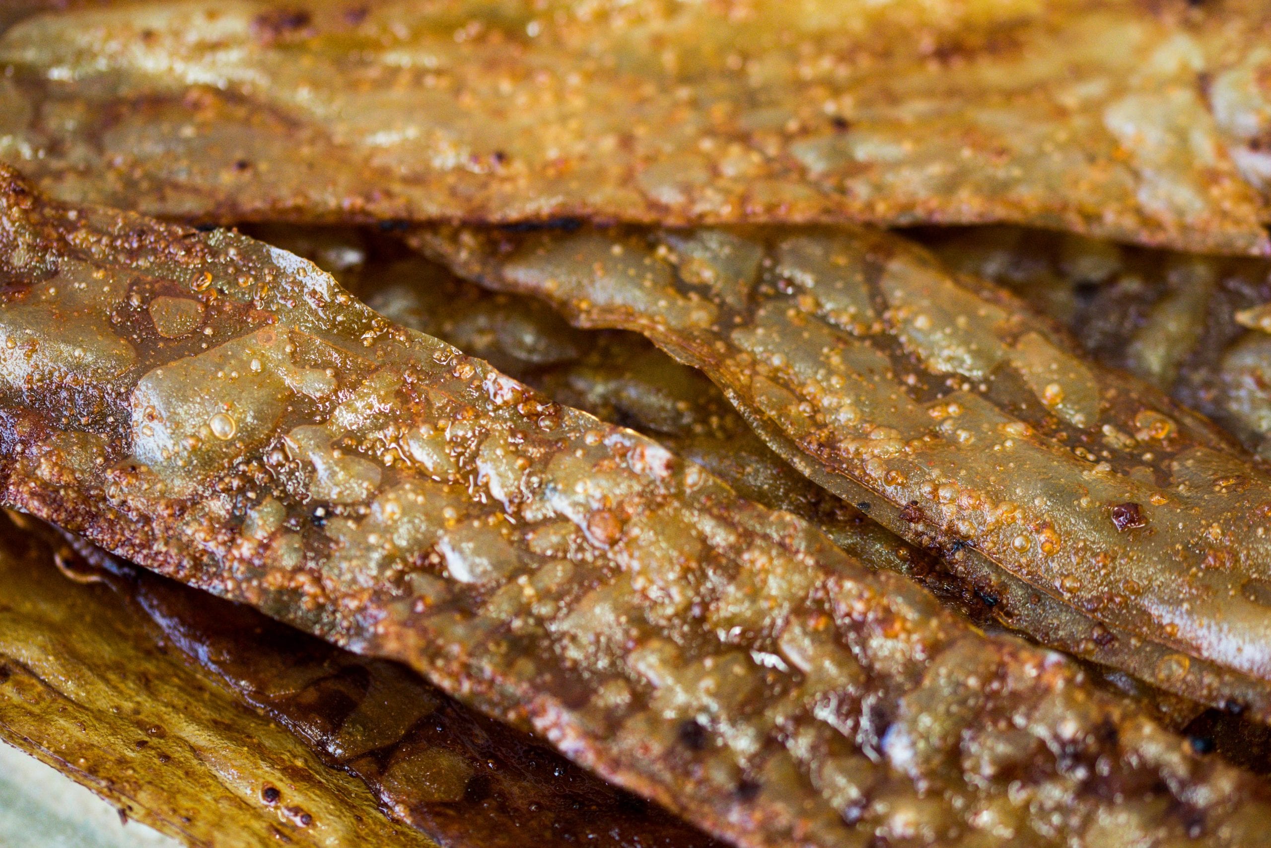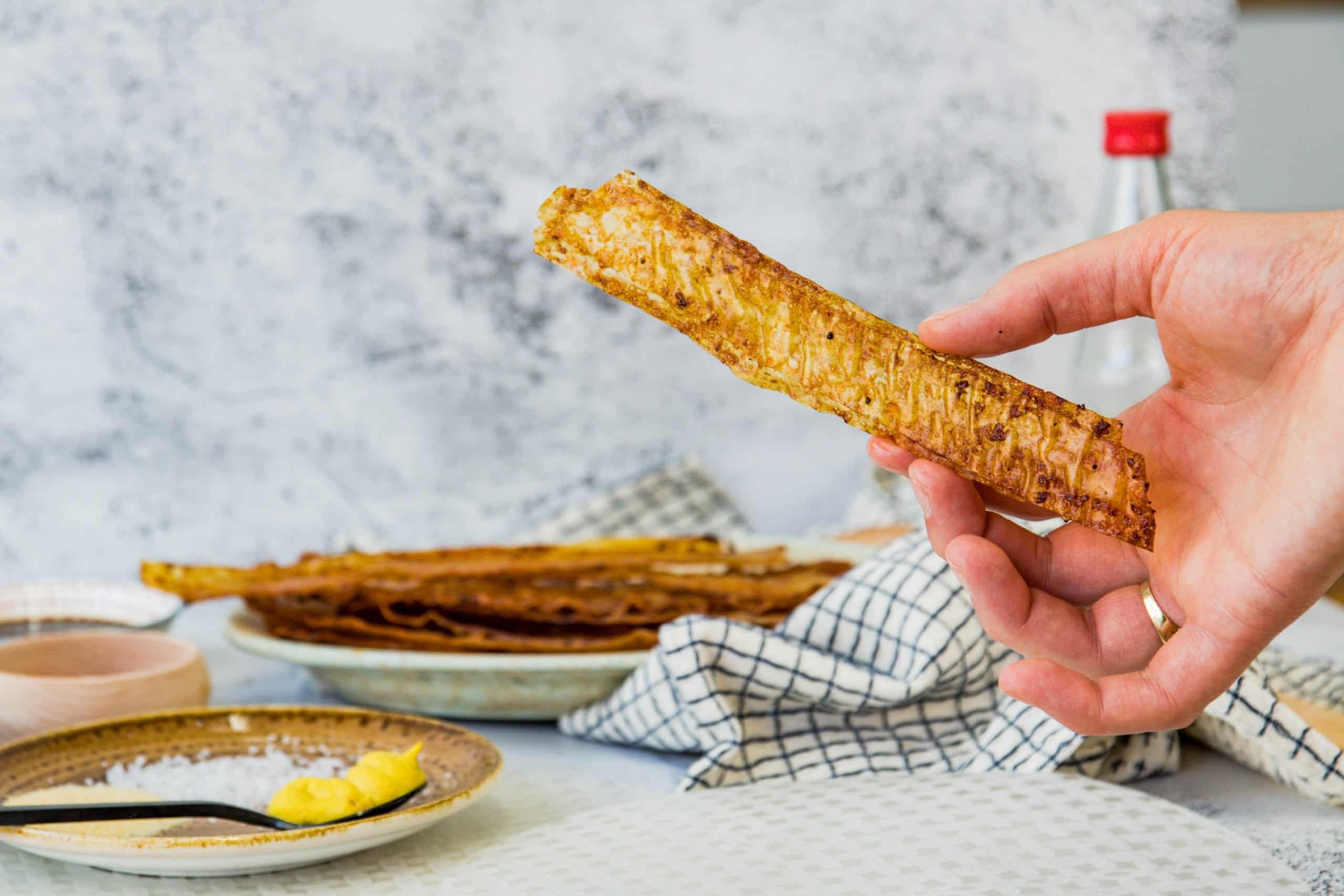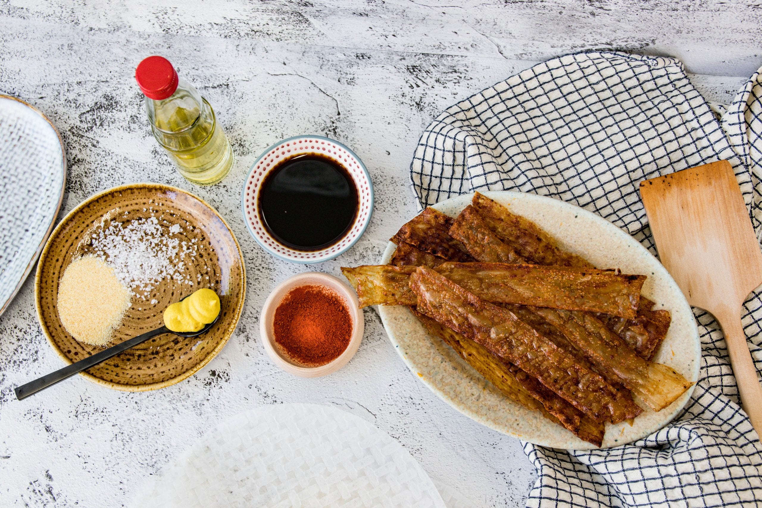 Kein Fleisch, kein Bacon?! Doch – ab jetzt schon! Wir haben eine vegane Variante von knusprigem Frühstücksspeck entdeckt und gleich für euch ausprobiert. Alles, was ihr dazu braucht, sind Reispapierblätter und eine rauchig-feurige Marinade, mit der ihr aus den hauchdünnen Reispapierblättern knusprig, würzige Streifen macht, die auf einem Sandwich mit Avocado oder in einer Bowl mit Edamame, Quinoa und Hummus für Biss und wunderbare Würze sorgen. Es ist unkompliziert und richtig gut!