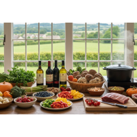 Свежие сезонные ингредиенты и вино к блюдам на кулинарном мастер-классе в Айхтале.
