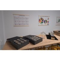 Der Basis-Barista-Kurs mit maximal acht Personen, Wasser und zubereitete Kaffeegetränke.